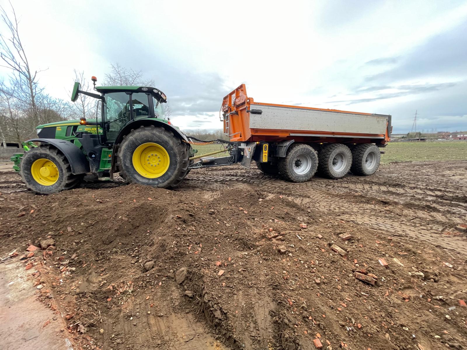 Het puin werd via de weide achteraan afgevoerd. Door de regen van de voorbije dagen was dat geen evidente opdracht, maar dankzij de inzet van het team op de werf verliep alles uiteindelijk vlot.